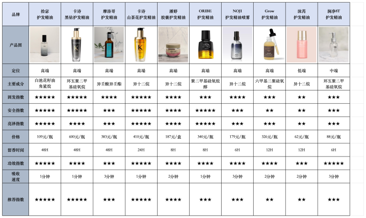 先跟全球共享一下各个品牌护发精油的基础情况对比: